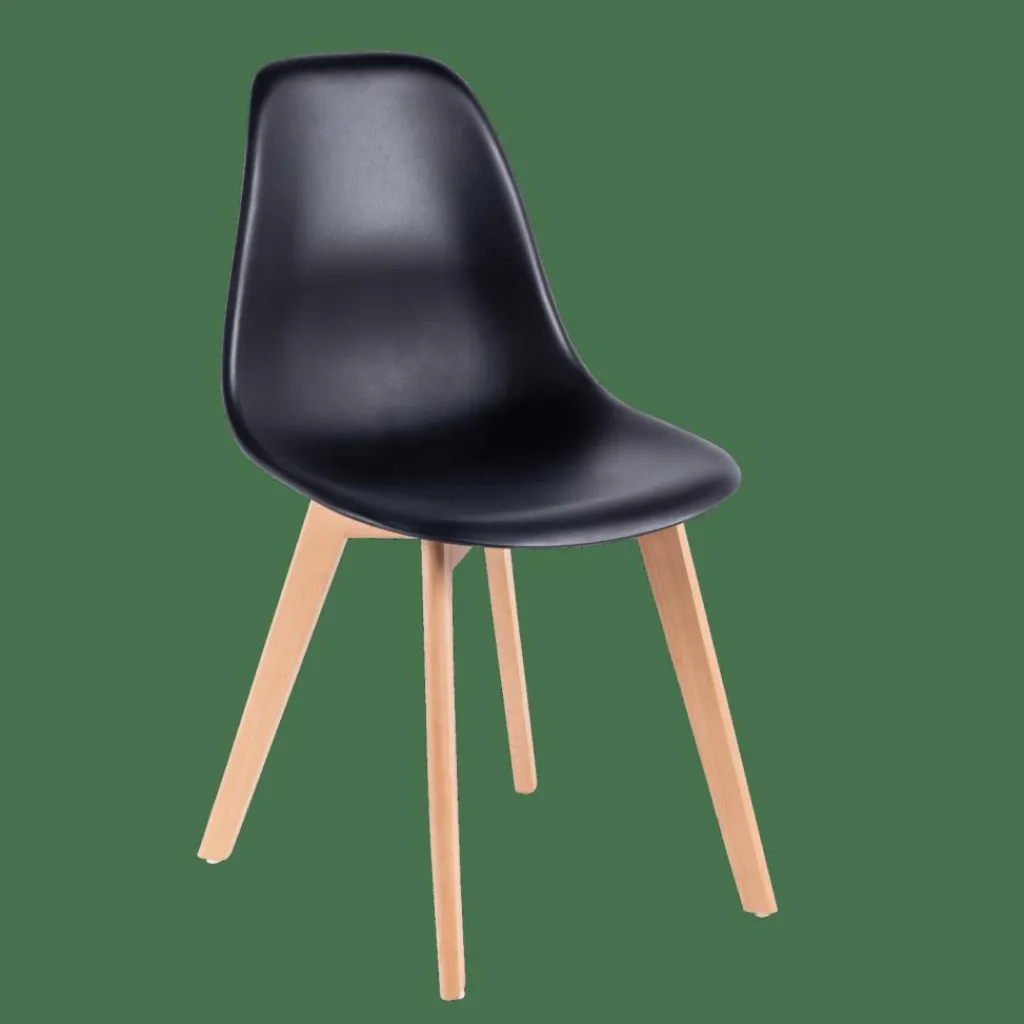 - Assise : polypropylène, Pieds : hêtre (Chine)